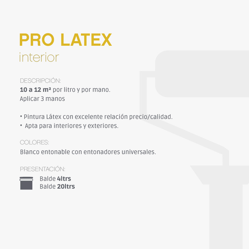 PROLATEX INTERIOR es una pintura al látex, fabricada en base a resinas en dispersión acuosa que proporciona un acabado liso mate ideal para la renovación de paredes interiores.Beneficios